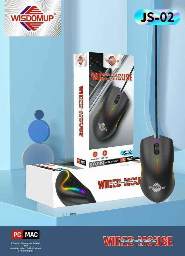 Mouse Cablato WISDONUP Js-02, Cavo da 1000mm, per PC e Mac, Ottico da Gaming con 5 Pulsanti, Retroilluminazione RGB, Ergonomico per Mano Destra