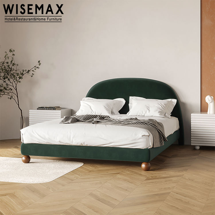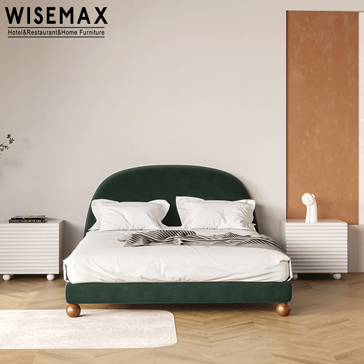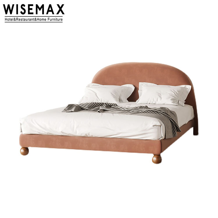 WISEMAX FURNITURE Indian Bedroom Furniture Rectangle Single Kids Bed Red Linen Fabric Soft Bed