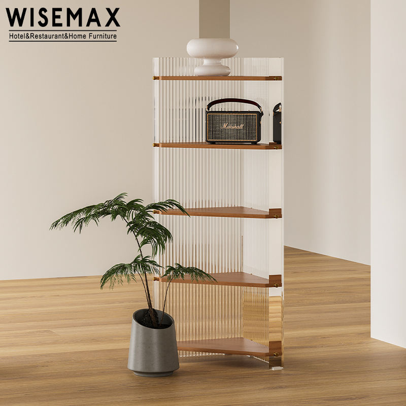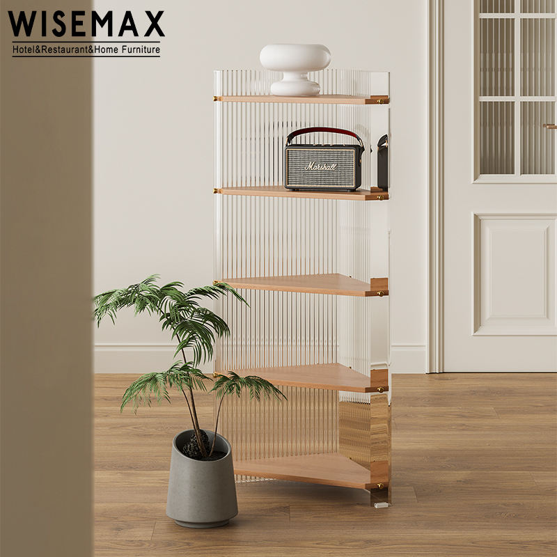 WISEMAX FURNITURE Modern Luxury Living Room Wall Triangular Shelving Storage Glass Wooden Frame Side Cabinet for Home Use