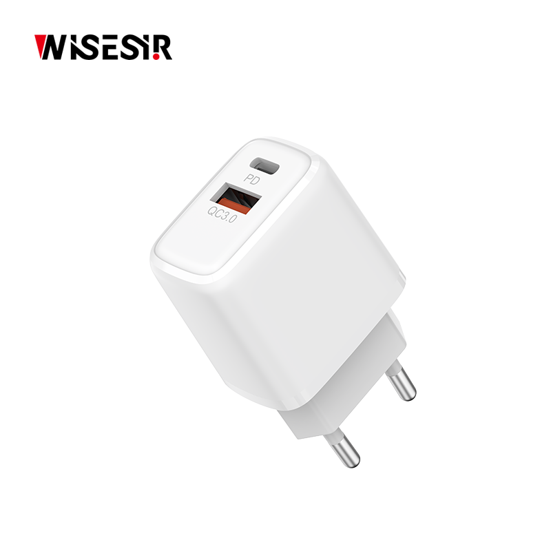 WISESIR PD 20W QC 3.0 Fast Charger EU Plug Dual USB C a Ports Portable Wall Charger for Samsung Galaxy S24 Home Office Use