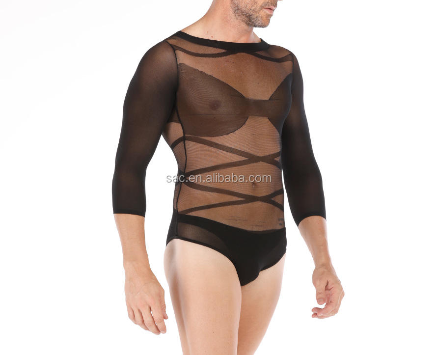 WN190021 Mens manica lunga attraente tuta canotta intimo vedere attraverso Lingerie Sexy tuta trasparente per uomo