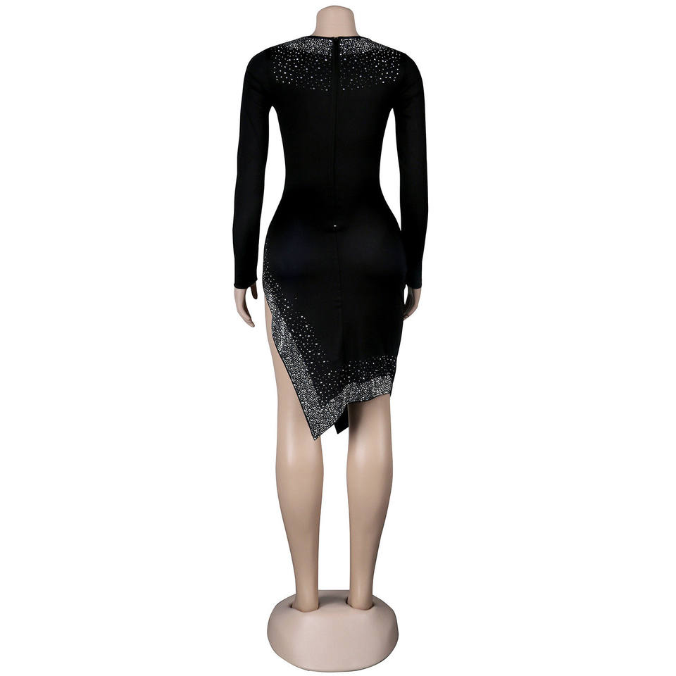 Abito in velluto nero elasticizzato con laccio laterale e spacco