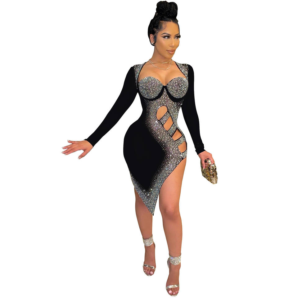 Vestito da festa con fasciatura estiva per le donne strano fiore stampa senza spalline spacco irregolare con nappine Patchwork senza schienale Skinny Club