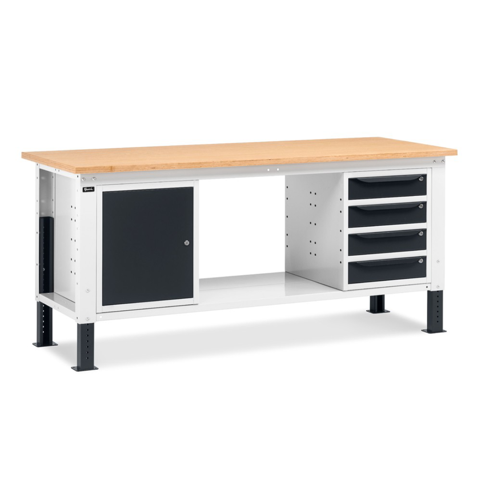 WORK20 banco da lavoro resistente con 1 cassetto armadio 4 cassetti 1 armadio con porta in acciaio ferro legno porta attrezzi uso officina