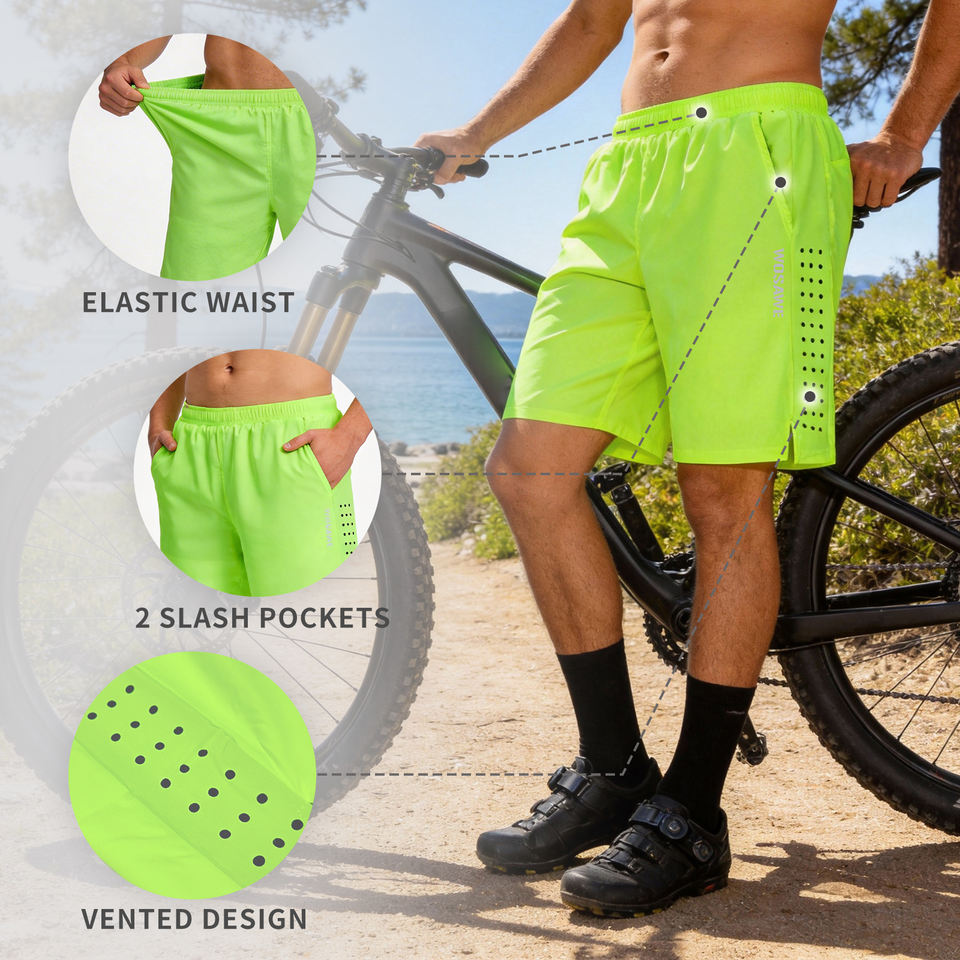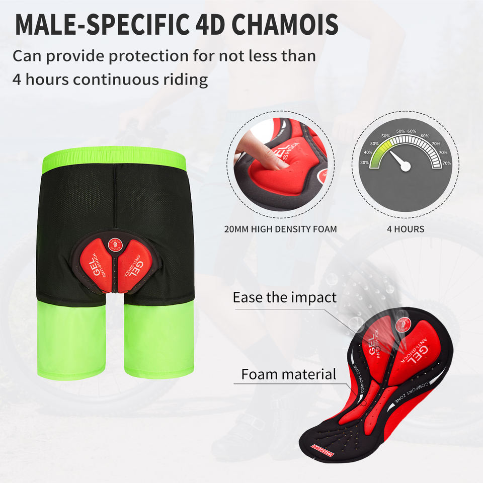 Pantaloncini da Ciclismo WOSAWE per Uomo con Imbottitura in Gel, Doppio Strato, Traspiranti e ad Asciugatura Rapida per Mountain Bike