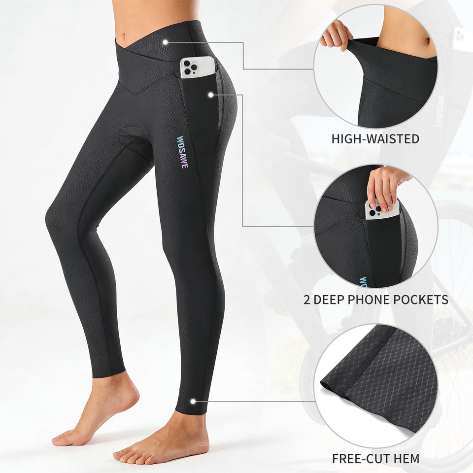 Pantaloni da Ciclismo WOSAWE per Donna, Elasticizzati, con Imbottitura 4D, Traspiranti e ad Asciugatura Rapida, per Ciclismo su Strada e MTB