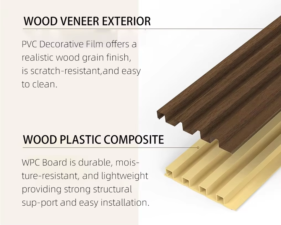 Pannello Murale Scanalato WPC 3D in PVC, Alternativa al Legno per Esterni, Commerciali, Cucine, Palestre, Stile Rustico Cinese