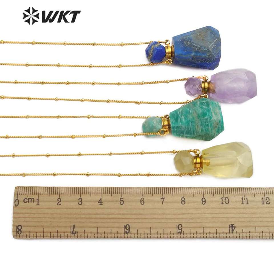 WT-N1162 Hot-sales Classic Fashion Gold Necklace with Natural Stone Perfume Bottle Pendant Real Gold Necklace