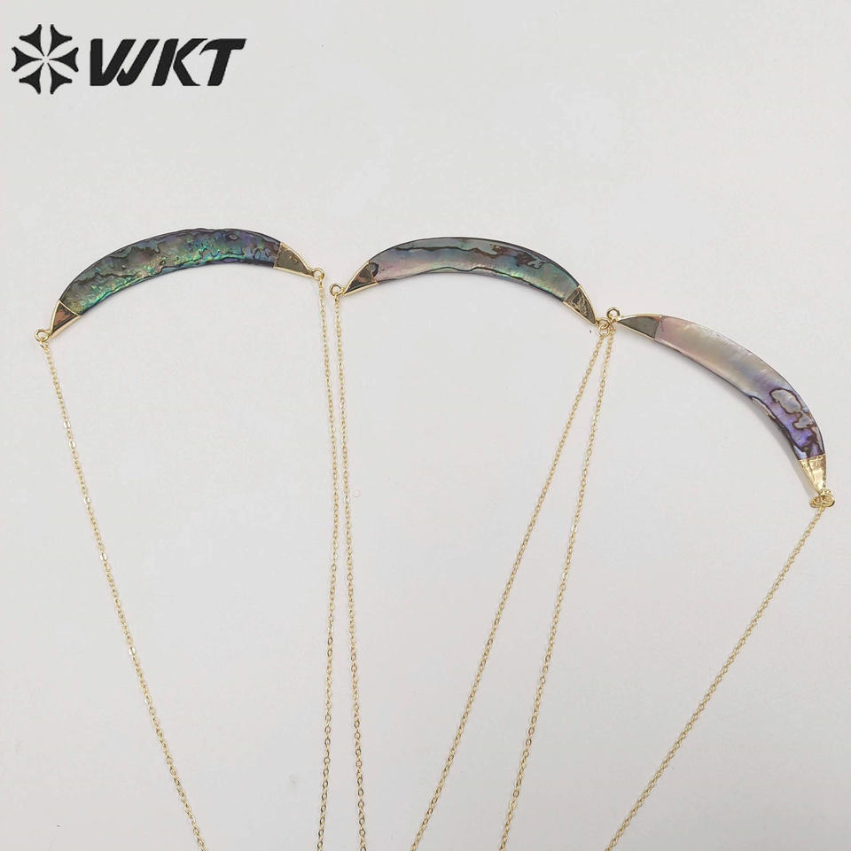 WT-N470 Fashion Double Bails Natural Abalone Horn Necklace 18k Gold Plated Shell Horn Women Necklace With 18 Inch Chain