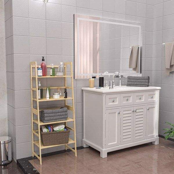 WTZ Libreria Moderna Aperta a 4 Ripiani in Bambù, Scaffale a Scala per Camera da Letto, Soggiorno, Ufficio, Mensole da Parete Trendy 2022