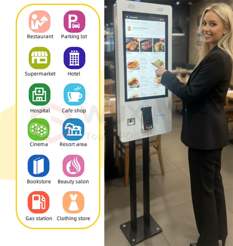 Terminale di Pagamento con Scanner di Codici QR WUXIN, Chiosco Self-Check-in, Macchina per Pagamenti con Carta di Credito, Chiosco Informativo con Schermo Touch per Centri Commerciali