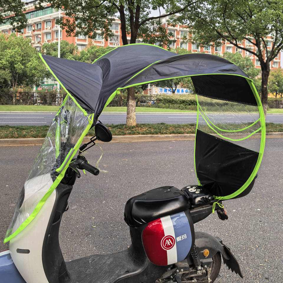 Multi-Functional Design: This product serves as a rain shelter, carport, and storage space, making it an ideal solution for users who need to protect their electric bikes and other items from the elements, such as "motorcycle owners" who require a reliable shelter.