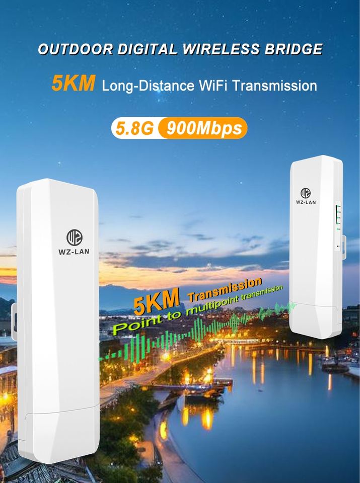 WZ-LAN 5KM 5.8G 900Mbps Outdoor Access Point to Point Wireless Bridge Long Distance Transmission Antenna Waterproof PTP PTMP