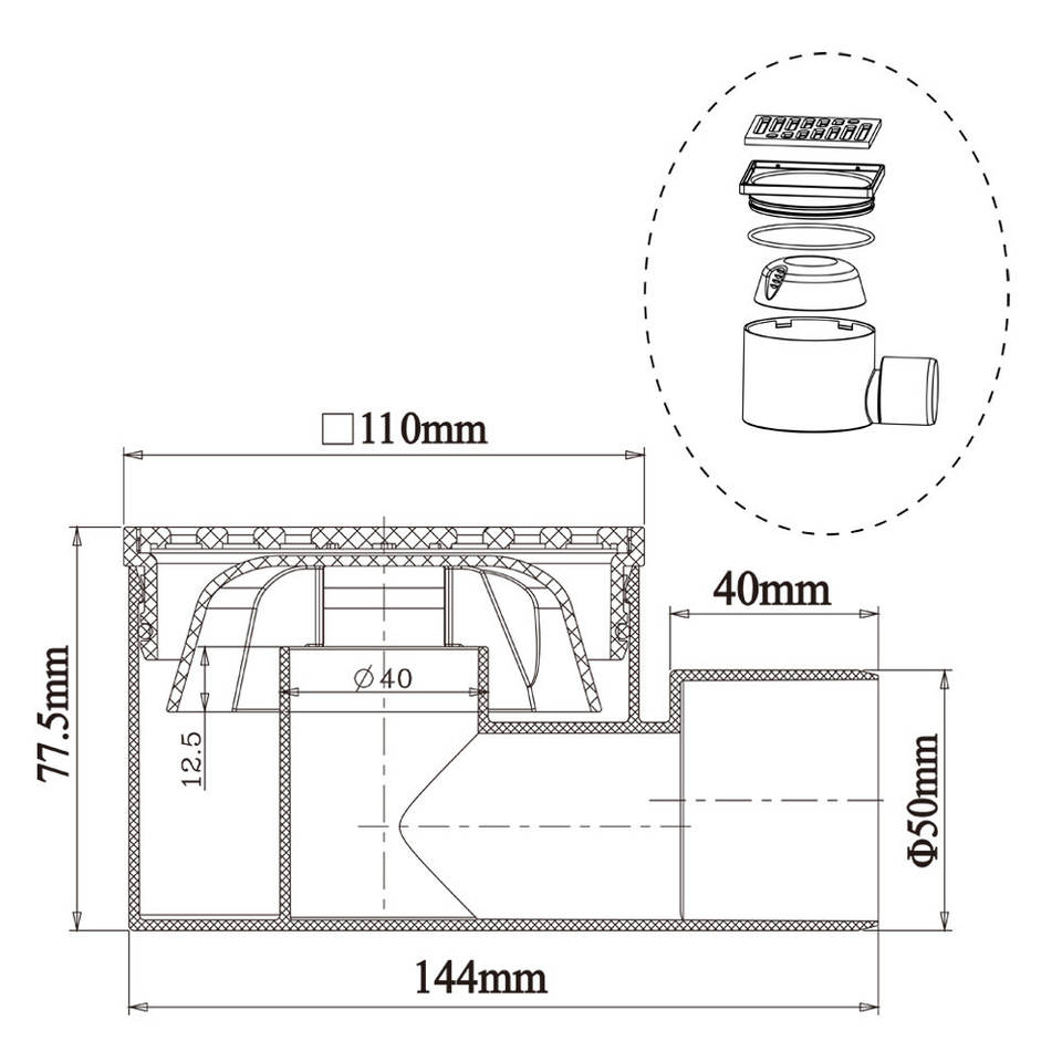 WaiiHO 030 Scarico a pavimento quadrato moderno in acciaio inox 304 con filtro, uscita da 4 pollici, lucidato, elettroplaccato, certificato Watermark