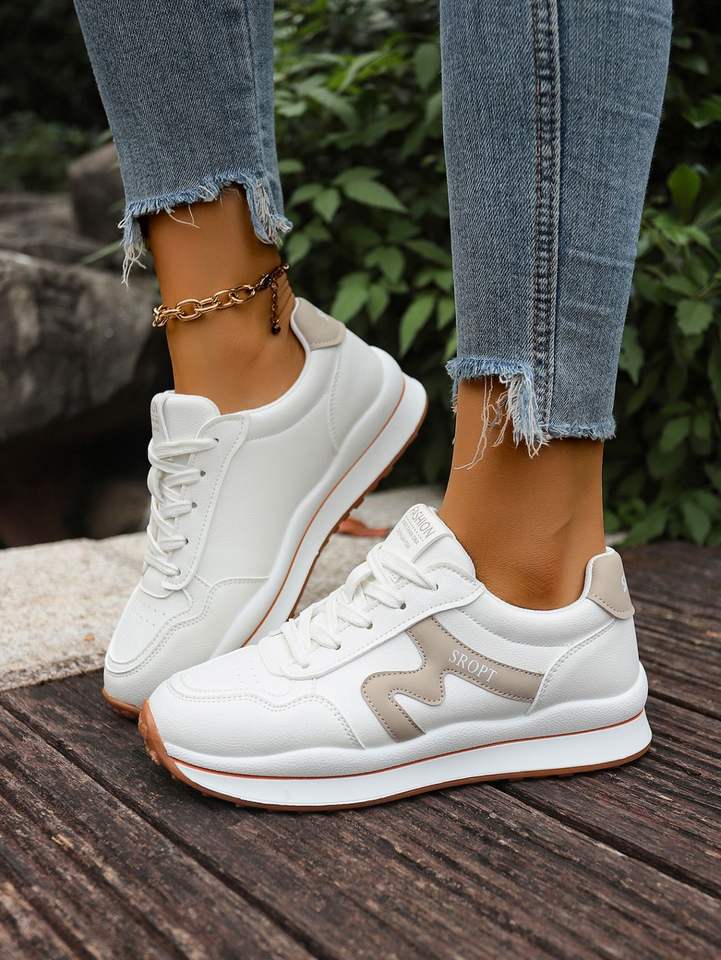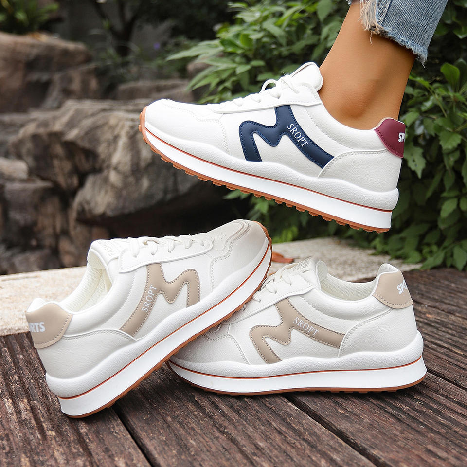 Scarpe da passeggio bianche da donna taglie forti, nuove sneakers autunnali traspiranti con lacci, scarpe casual che fanno sembrare i piedi più piccoli