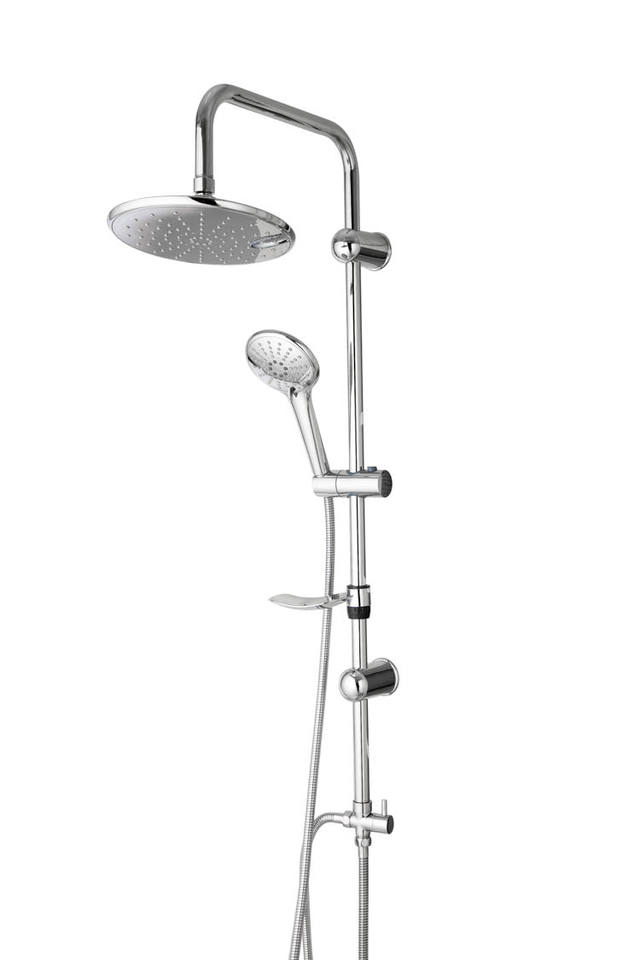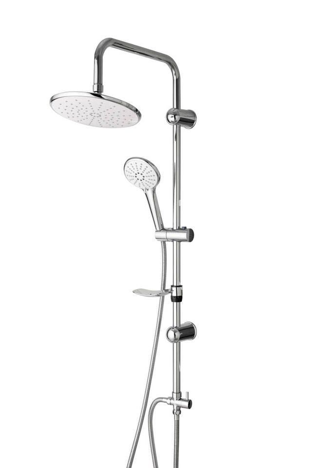 Set Doccia a Parete con Tubo in Acciaio Inox 201 e Separatore d'Acqua in Ottone, Tubo Cromato da 1,5M e Soffione Doccia in ABS