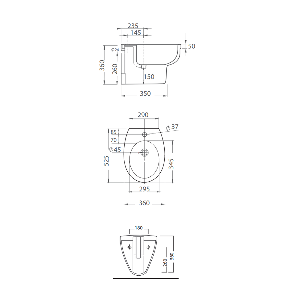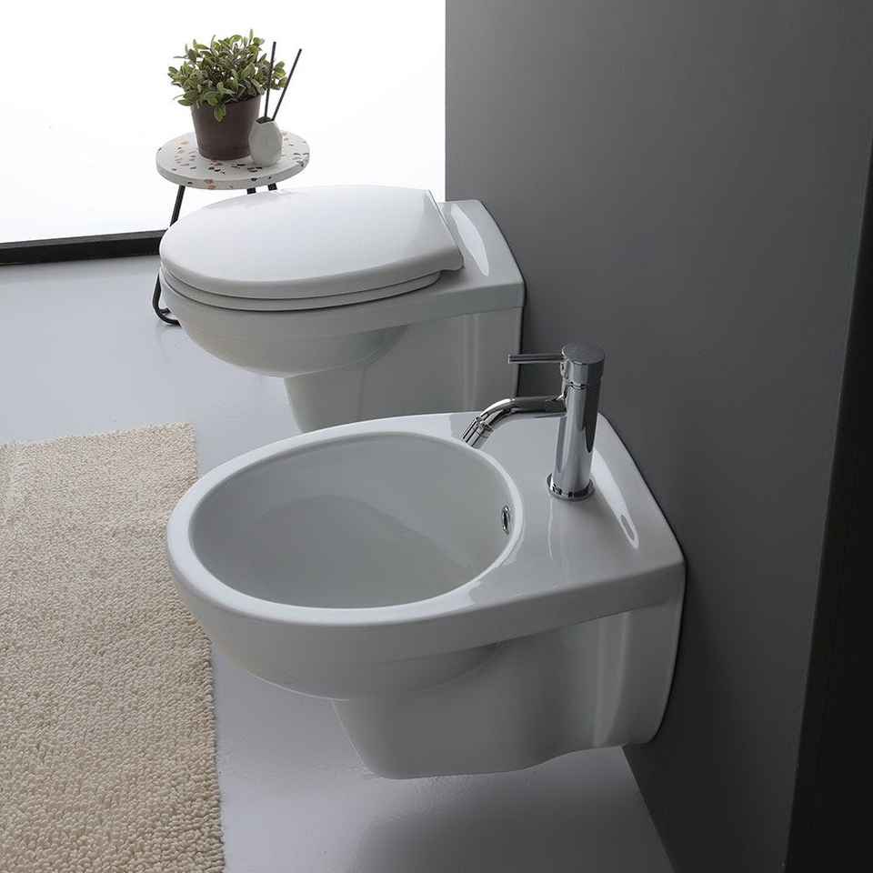 Set di Sanitari in Ceramica da Parete per Installazione in Bagno in Stile Corsica