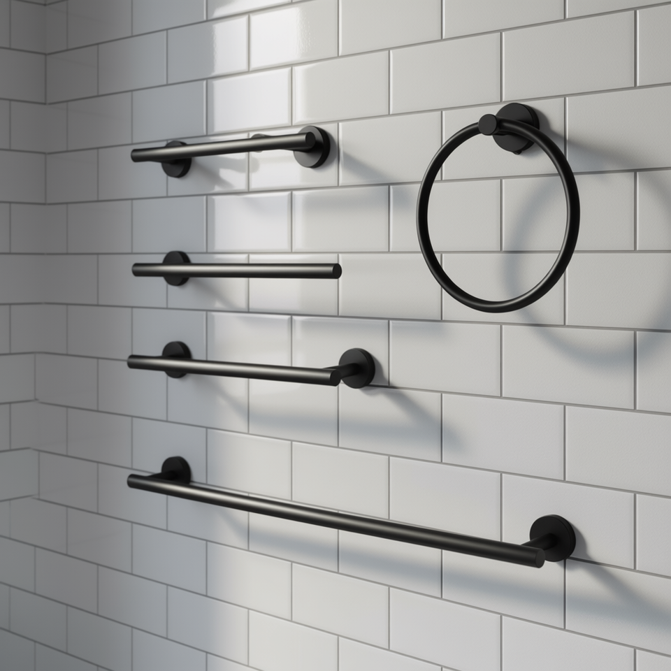 Set di 6 Portasciugamani da Parete in Acciaio Inossidabile Nero, Accessorio Minimalista per il Bagno