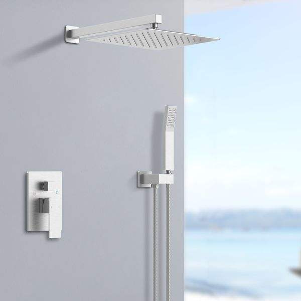 Wall Mounted 12\" Rainfall Shower Head & Handheld Faucet Combo Brushed Nickel Finish Rainfall Shower System