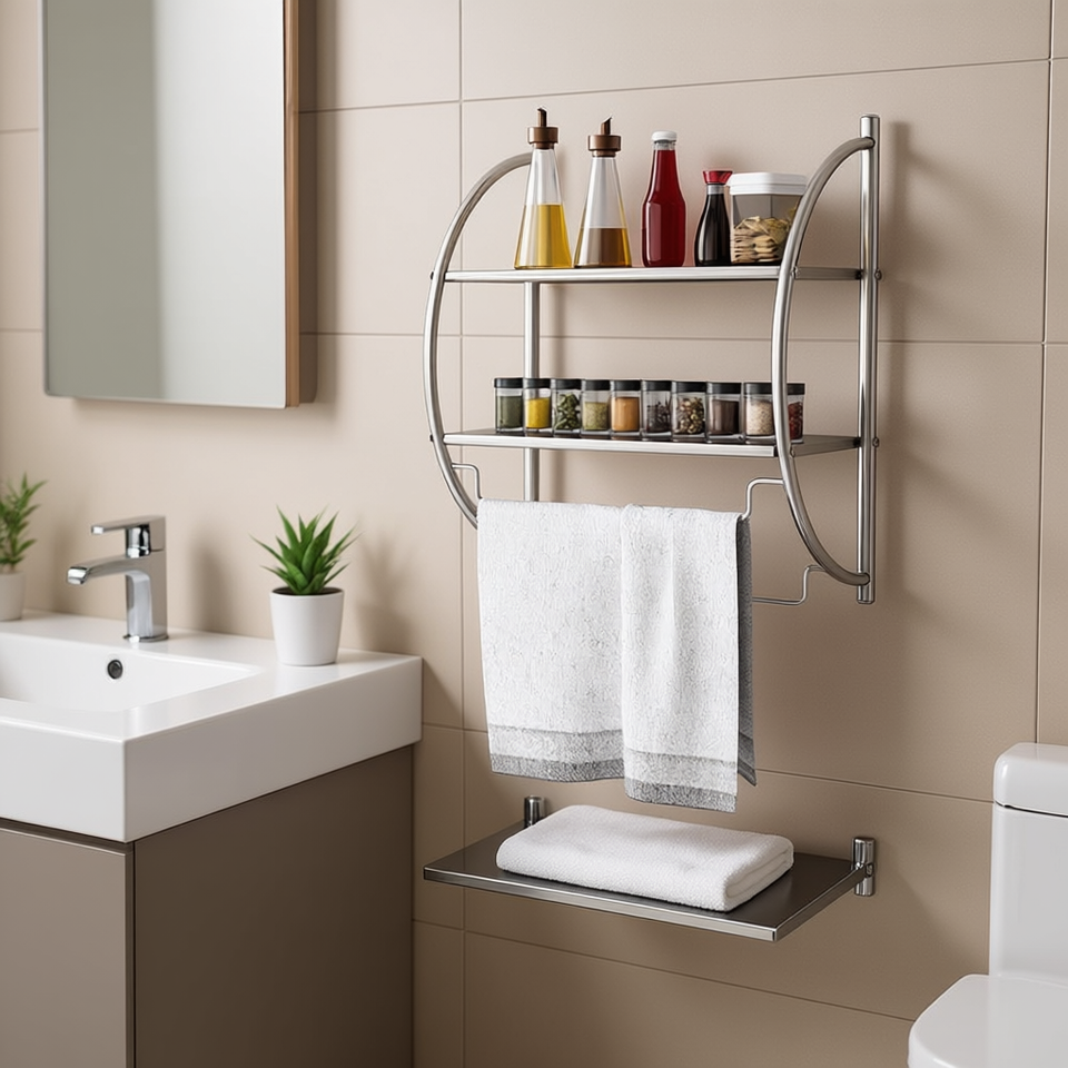 Wall Mounted 2 Tier Bathroom Towel Rack 60 Cm 304 Stainless Steel Double Rod Chrome Finish Contemporary Design