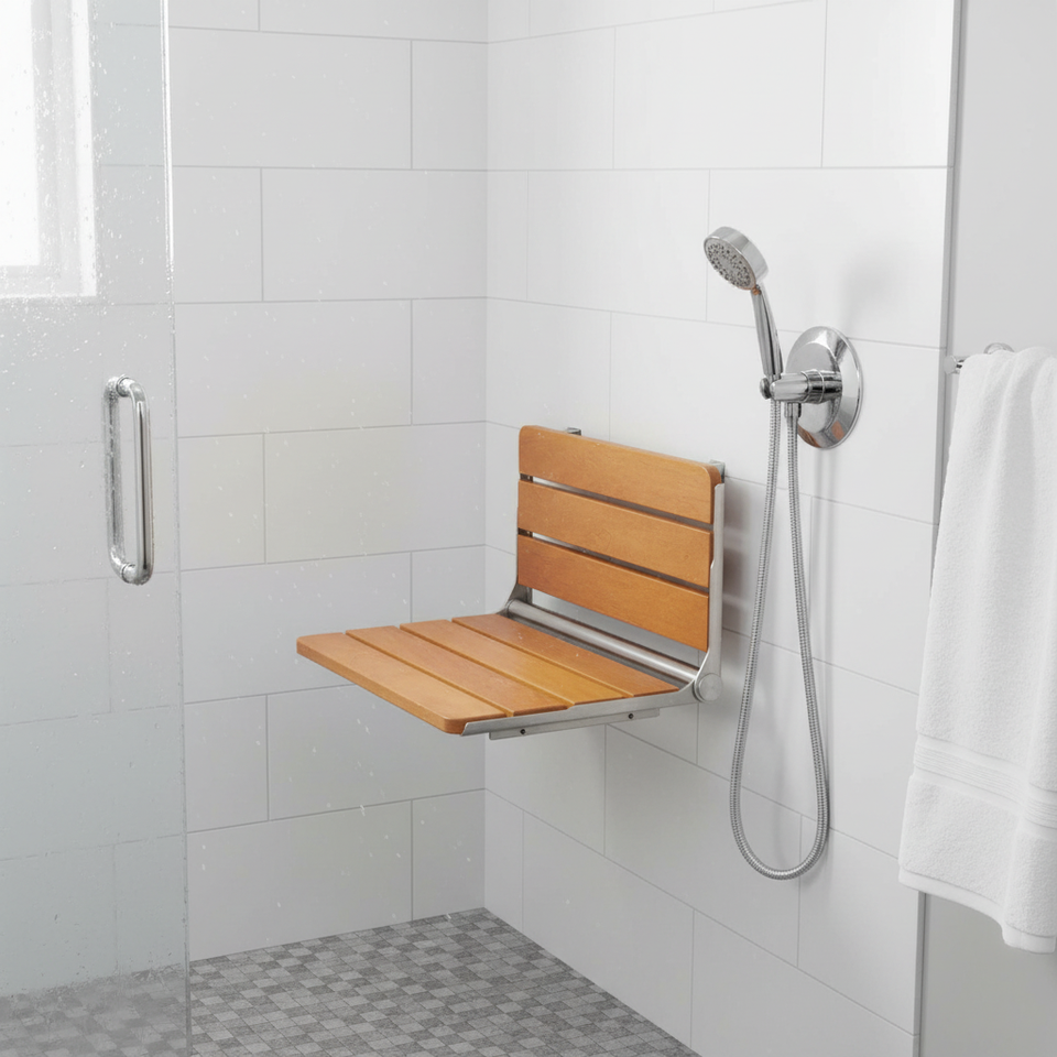 Panca da Doccia Pieghevole in Teak da Parete 20.9 X 16'' Capacità di Carico 500 Libbre Salvaspazio Attrezzatura di Sicurezza per Anziani e Donne in Gravidanza