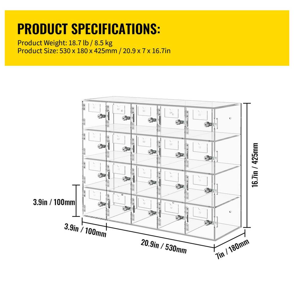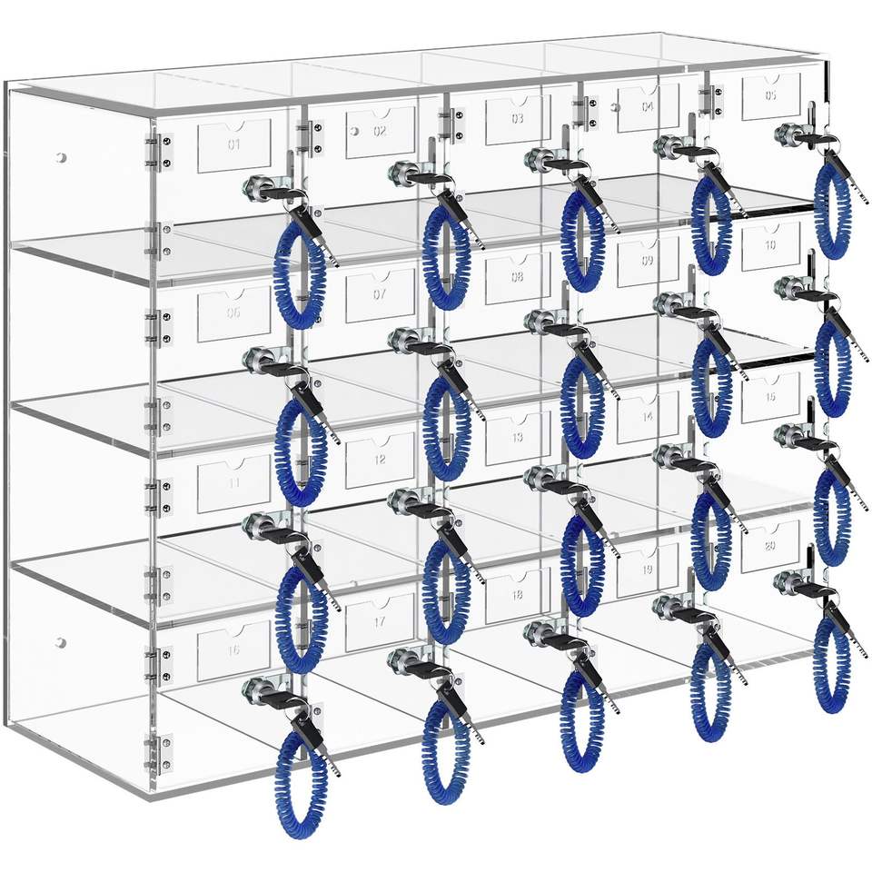 Armadietto a Muro per Cellulari con 20 Scomparti in Acrilico, Serrature e Chiavi per Ufficio, Aula e Palestra