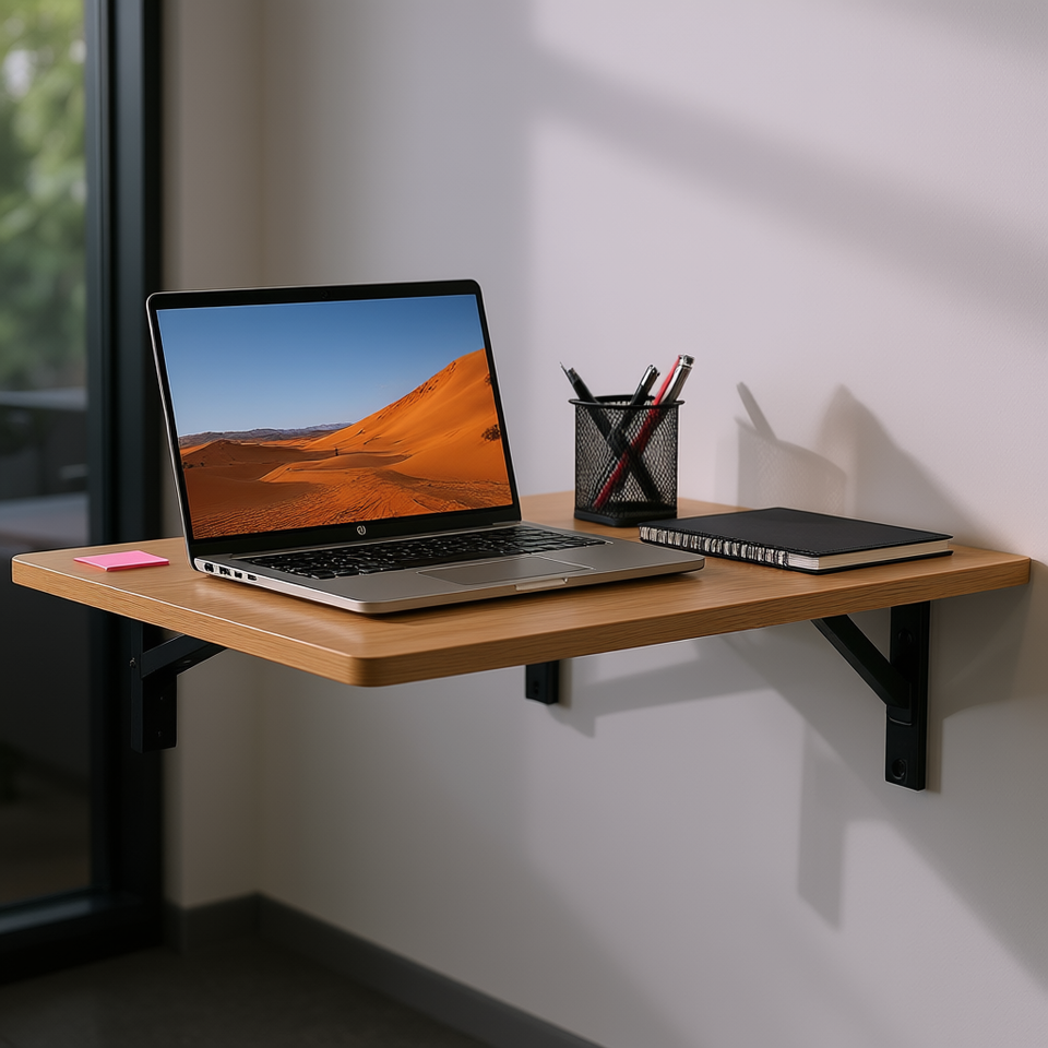 Wall Mounted Wooden Floating Desk 23.6 X 15.6 Inch Carbon Steel Bracket Folding Office Table For Dining Laundry Workspace
