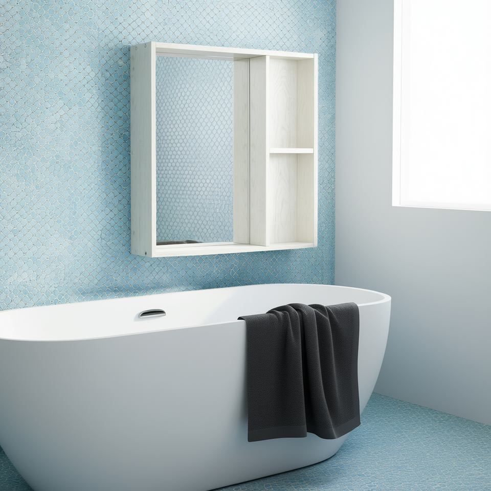 Armadietto Portamedicinali da Parete Bianco 24.75x25.5 Pollici con Specchio e Ripiano Portaoggetti per Bagno