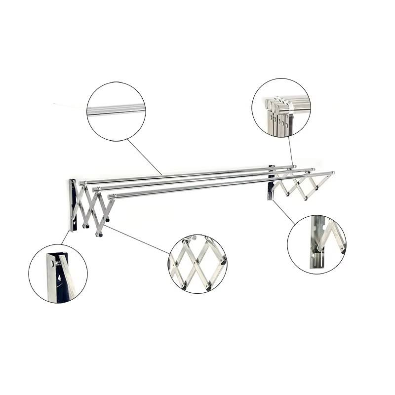 Stendibiancheria a Muro Pieghevole a 3 Aste in Acciaio Inossidabile, Salvaspazio, Nuovo Design, per Bagno e Esterni