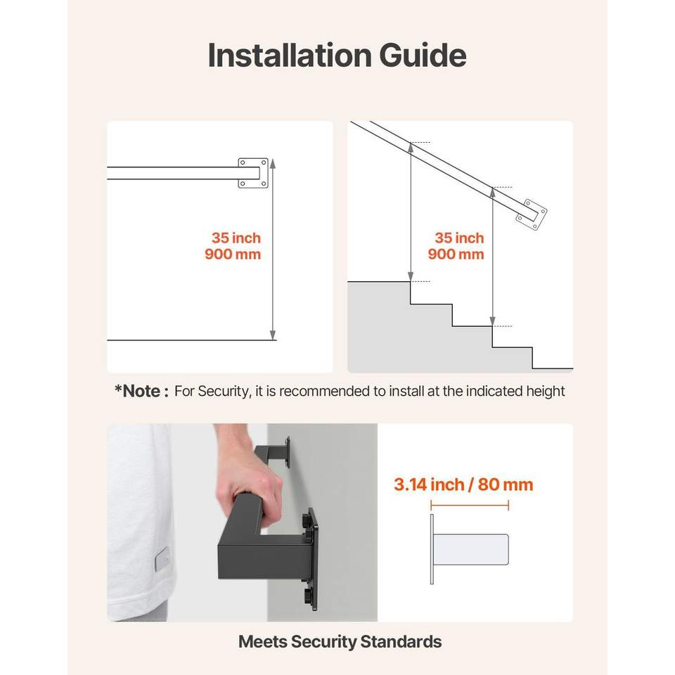 Corrimano per Scale da Interno in Ferro Nero da 3 Piedi Montato a Parete, Capacità di Carico 250 libbre, Ringhiera Industriale Elegante a Forma di S