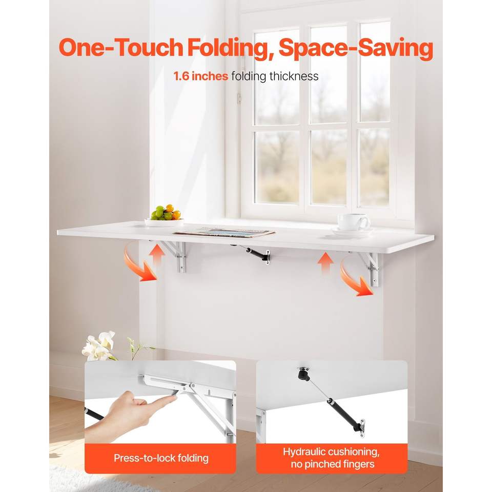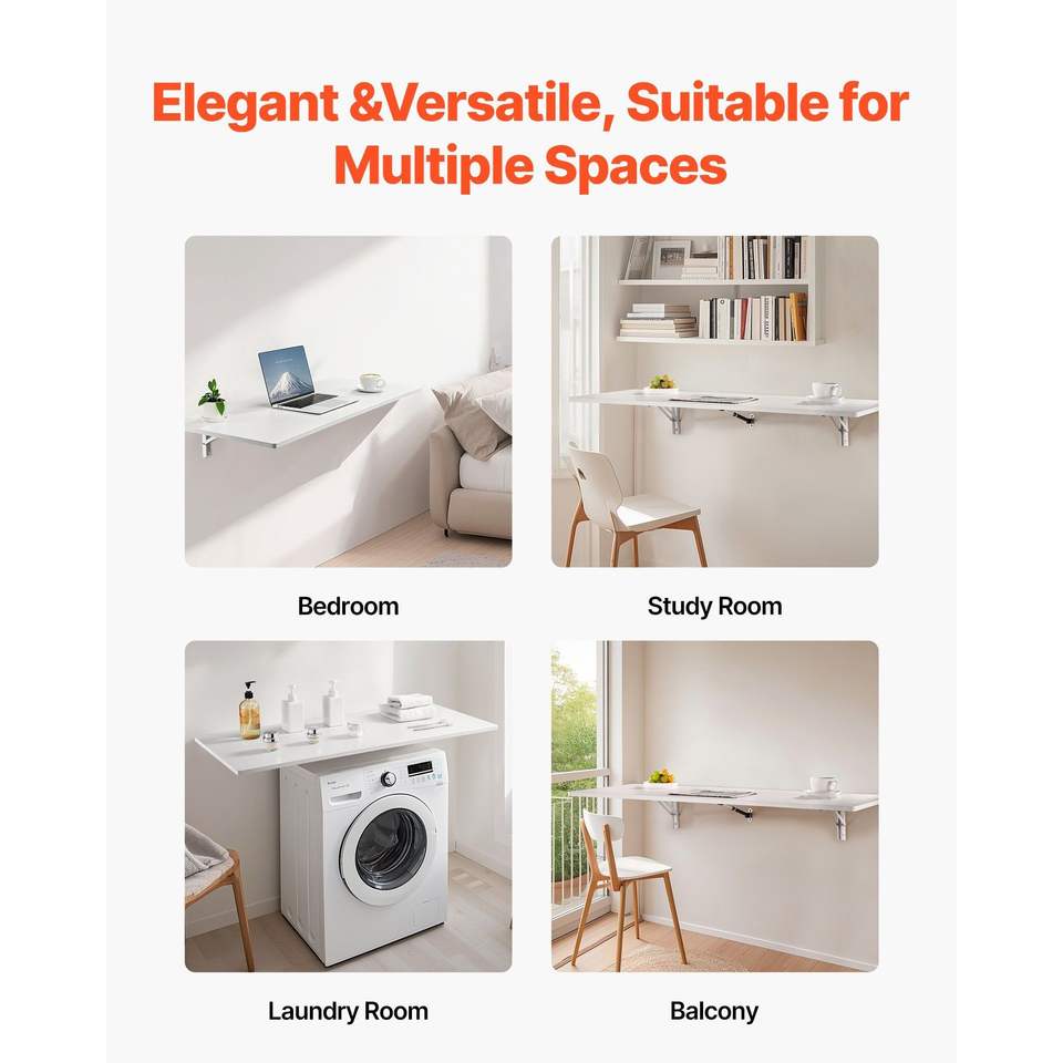 Tavolo Pieghevole da Parete 43,3 x 18 Pollici con Staffa in Ferro Flottante, Scrivania per Spazi Ristretti, Postazione Computer