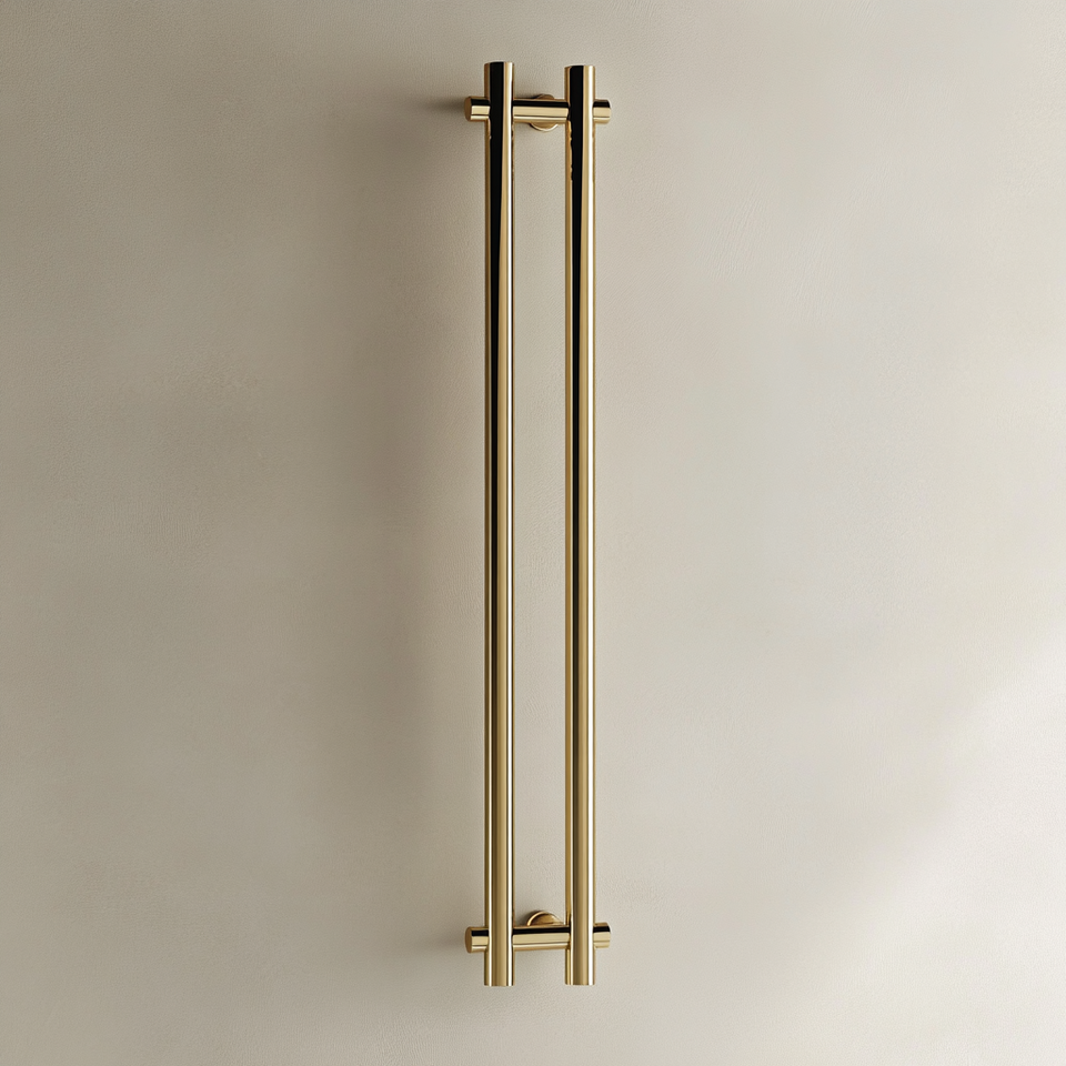 Scaldasalviette Doppio da Parete Verticale Elettrico in Acciaio Inox Dorato per Bagno