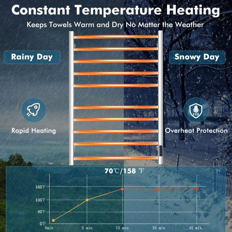 Scaldasalviette Elettrico da Parete 10 Bar con Timer Integrato, Comodo ed Efficiente