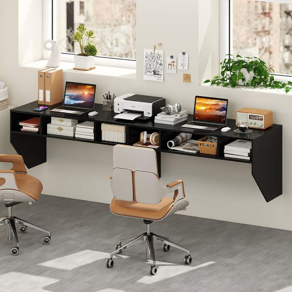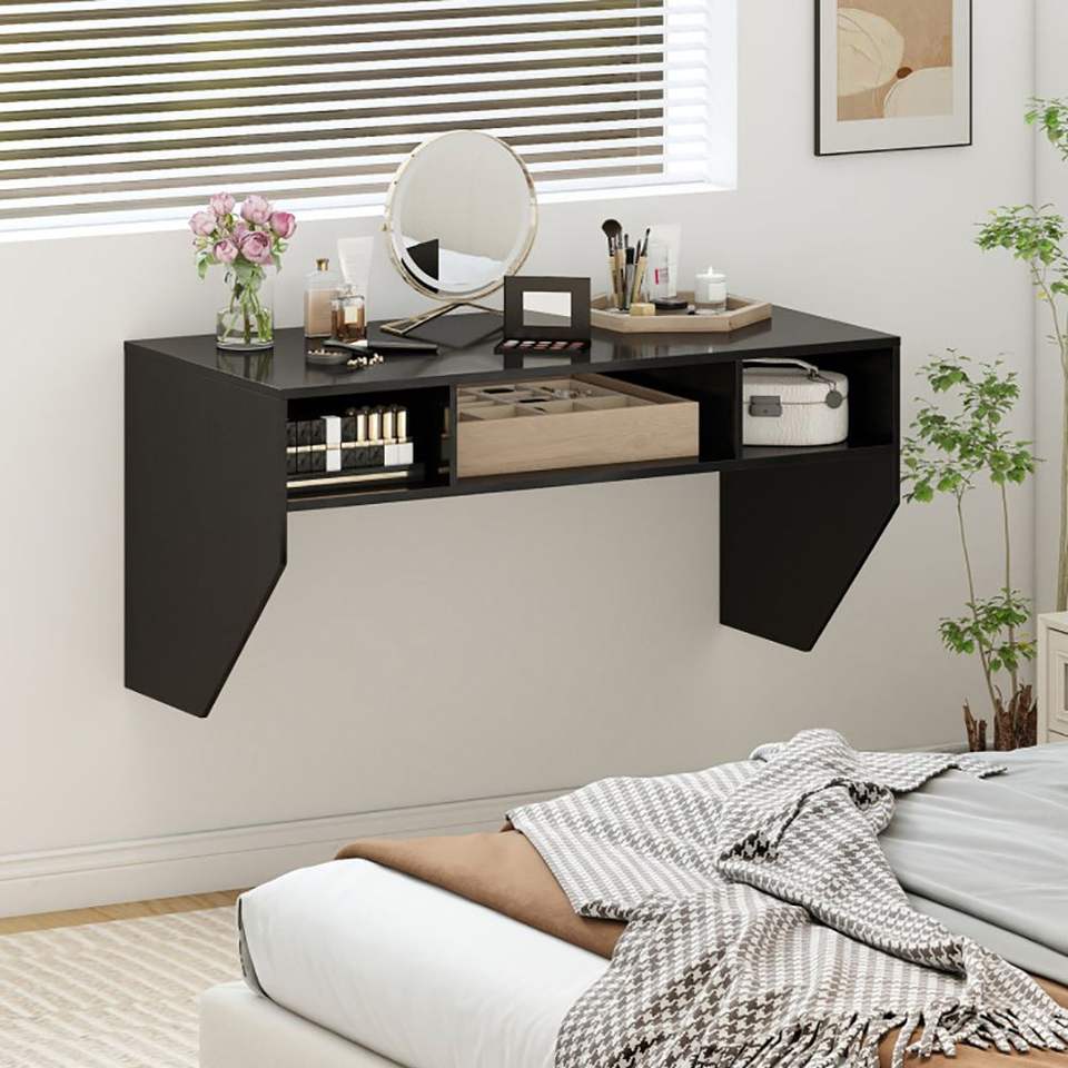 Scrivania per Laptop Sospesa a Parete con 3 Scomparti Portaoggetti, Prodotto Scrivania per Computer