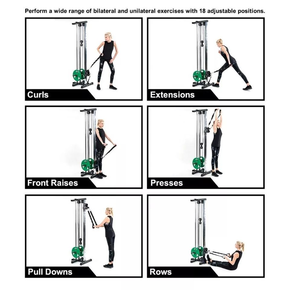 Sistema di pulegge alto/basso: Offre opzioni di allenamento versatili, mirando a diversi gruppi muscolari, inclusi schiena, petto e braccia, migliorando la forma fisica e la forza complessiva.