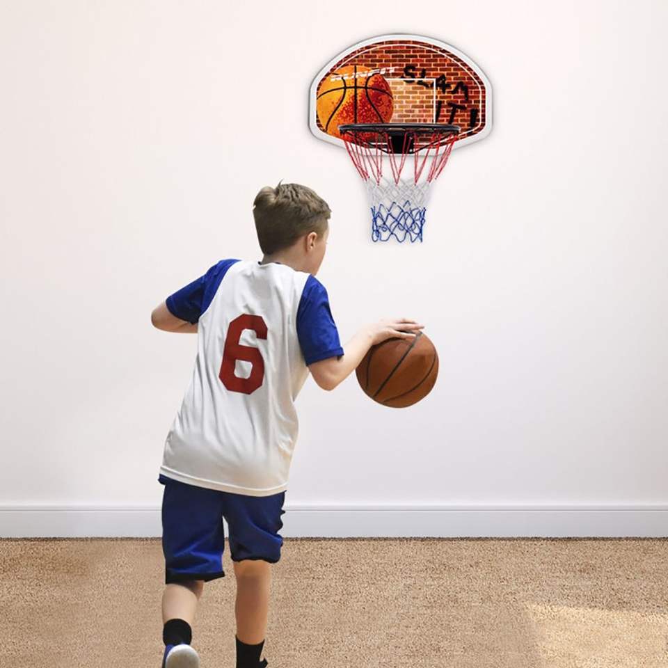 Tabellone da basket da parete per interni con canestro e 2 reti, ideale per palestra domestica o uso in classe
