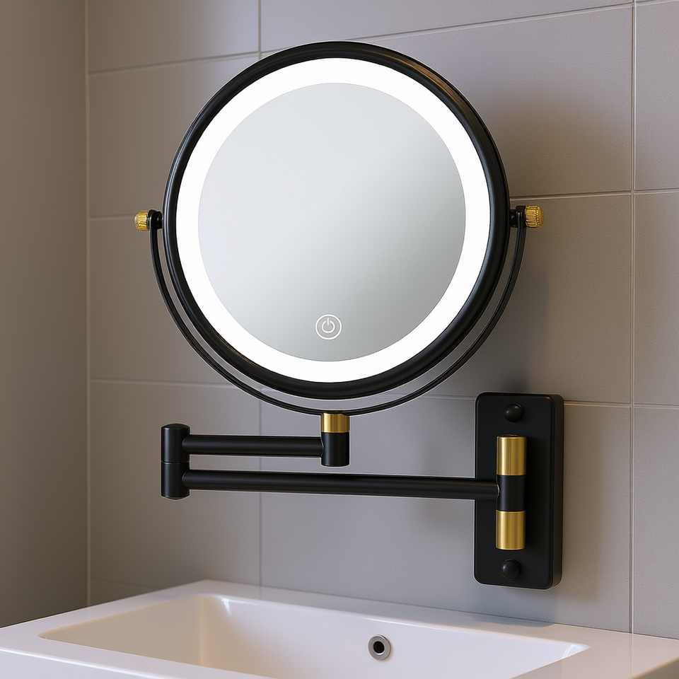 Specchio da Bagno LED a Parete Rotondo 8.6 Pollici, Bifacciale con Ingrandimento 1X e 10X, Design Moderno