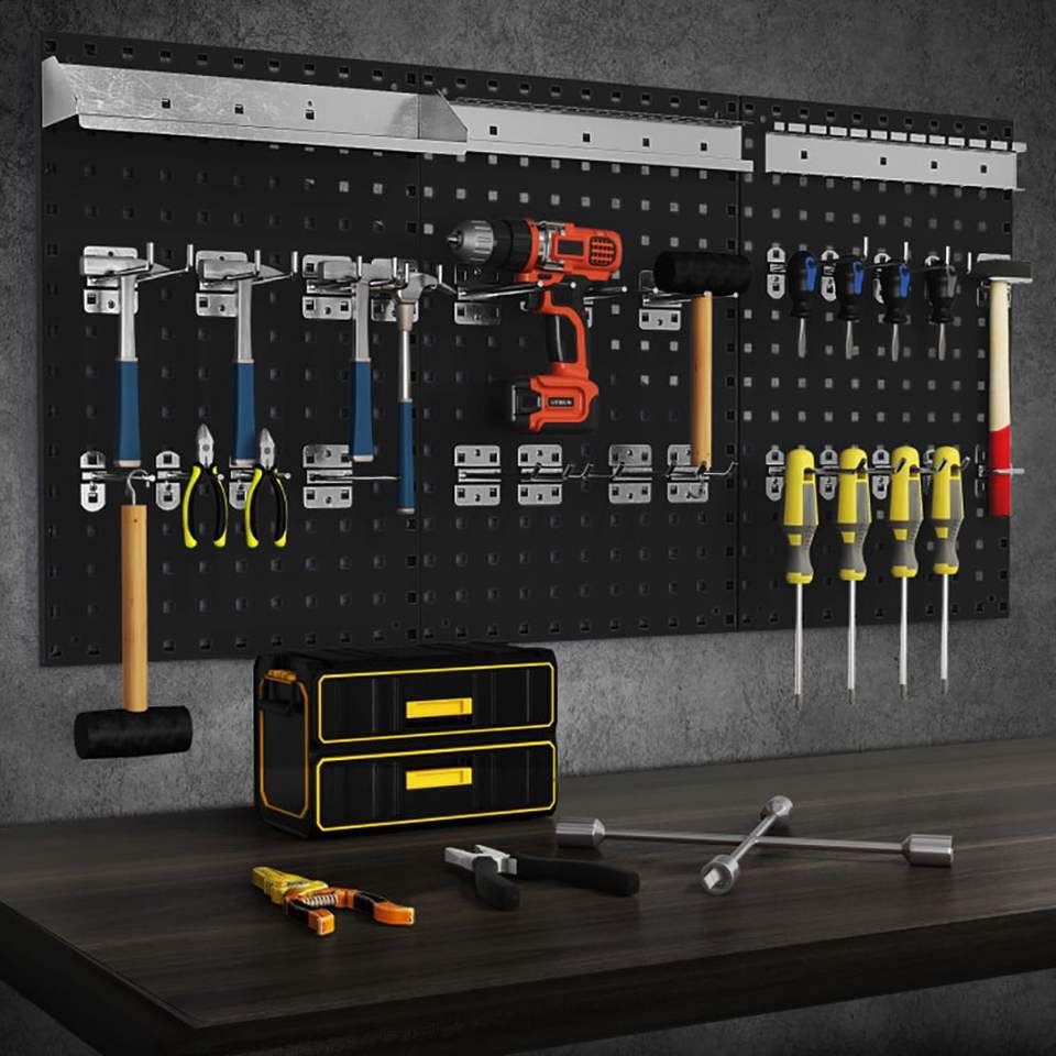 Kit Pannello Forato da Parete con 3 Pannelli per Soluzione di Stoccaggio a Muro per Garage e Officine
