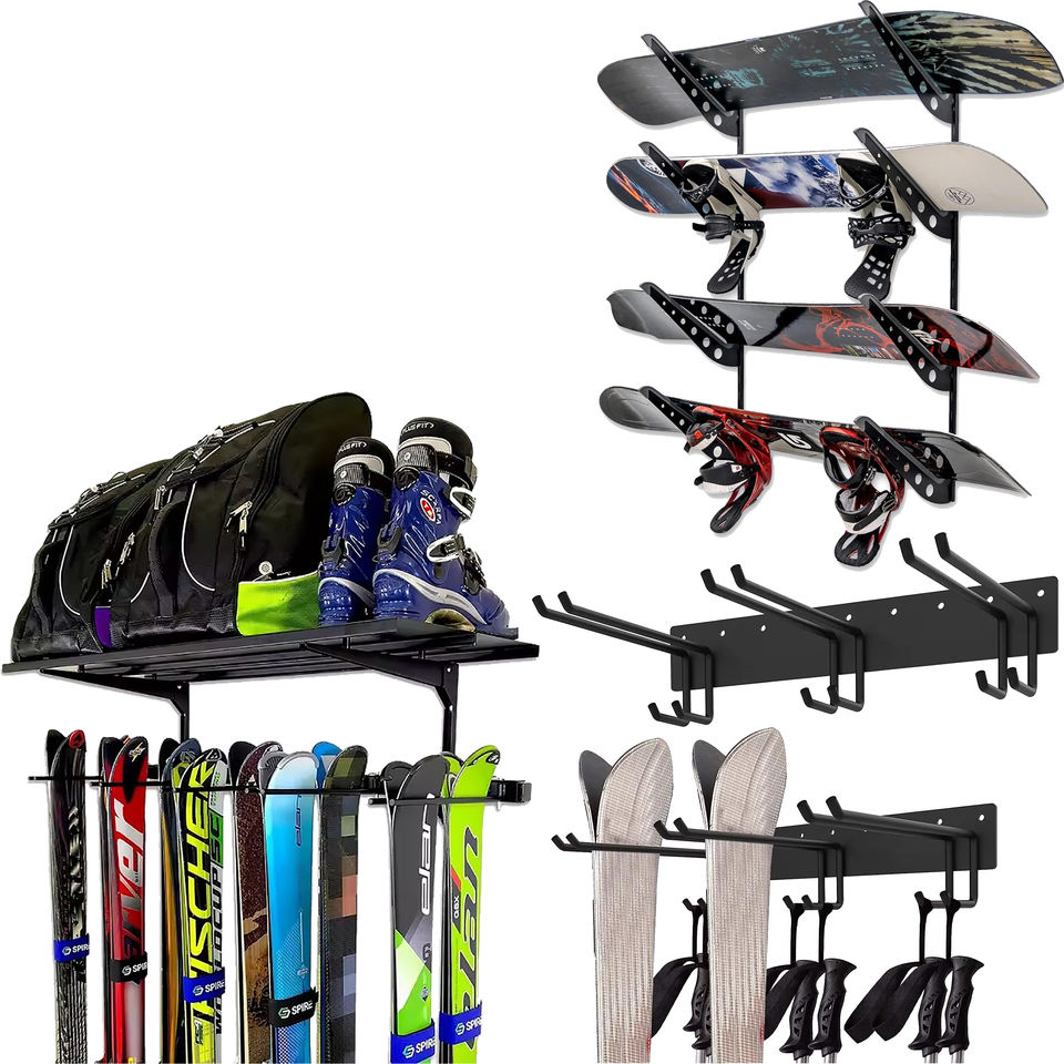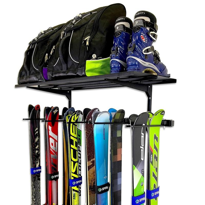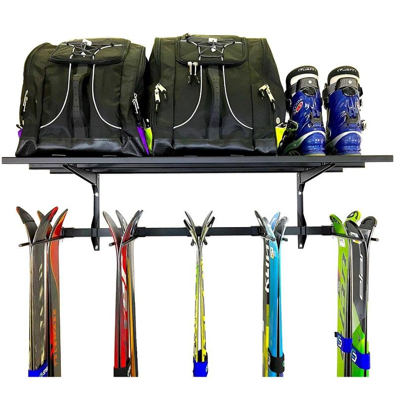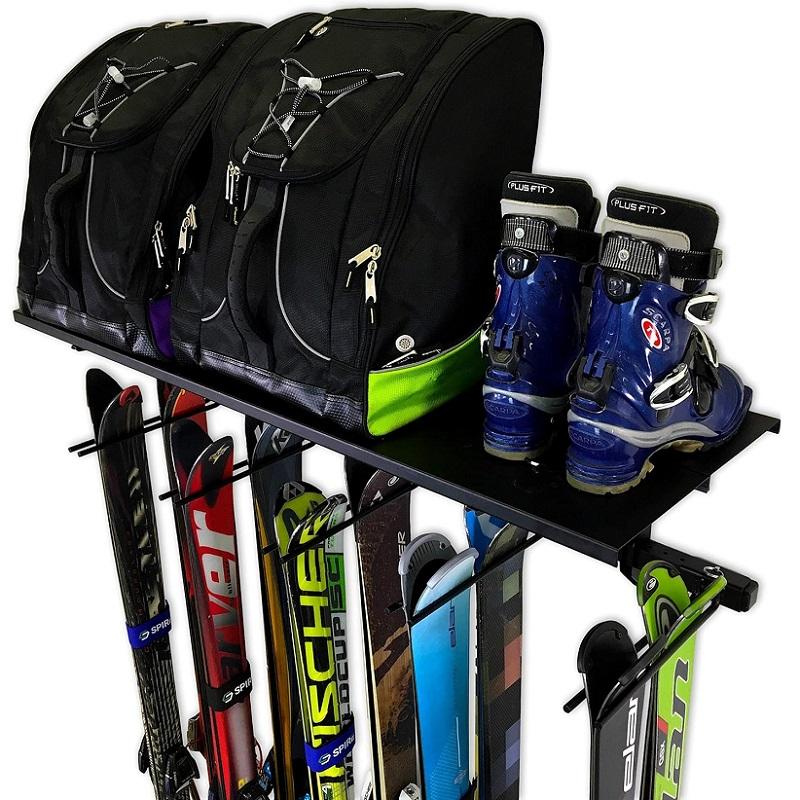 Portaoggetti da sci a parete con ripiano per borse da sci e porta attrezzi