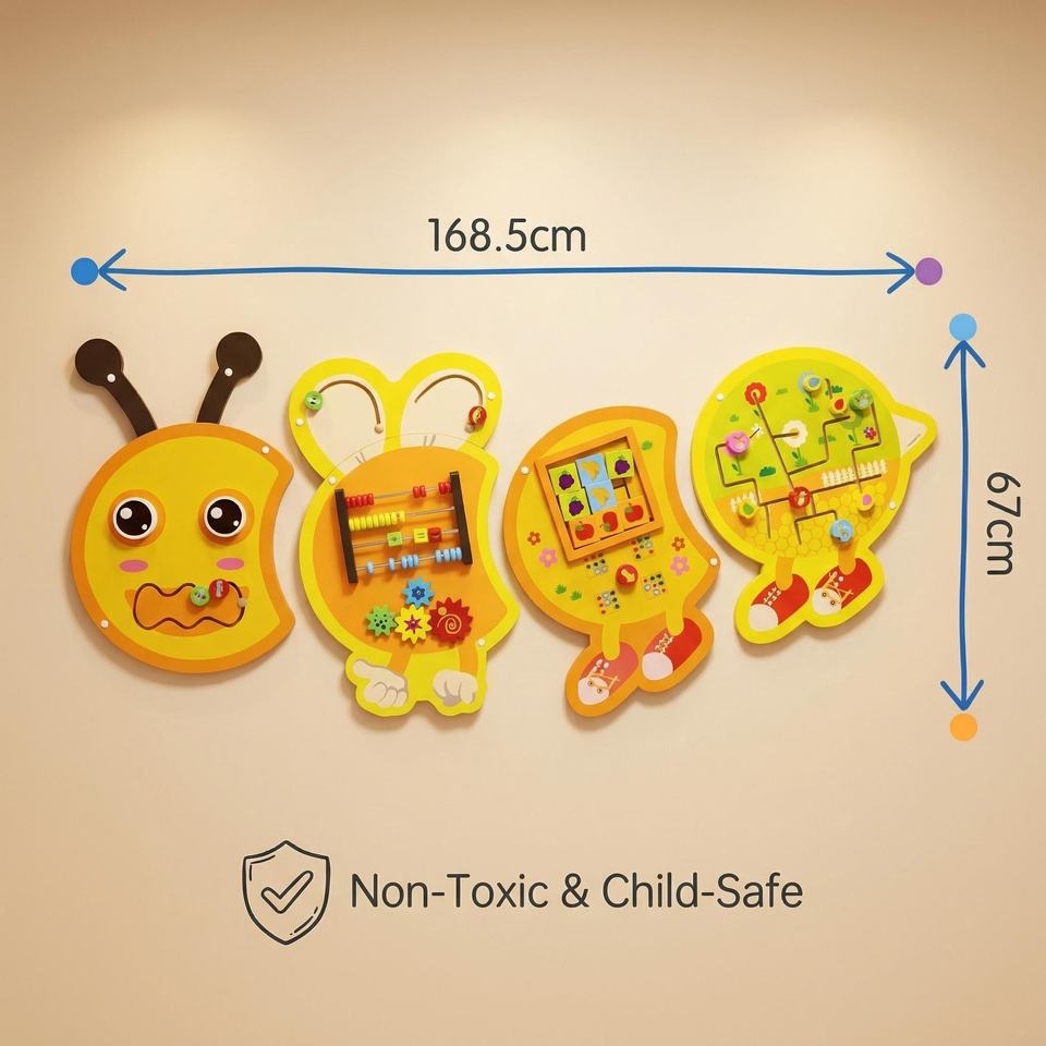 Wall-mounted Wooden Little Bee Educational Toy Montessori STEM Colorful Wall Decor Multi-Ability Training Interactive Bee Board
