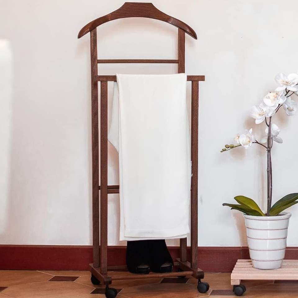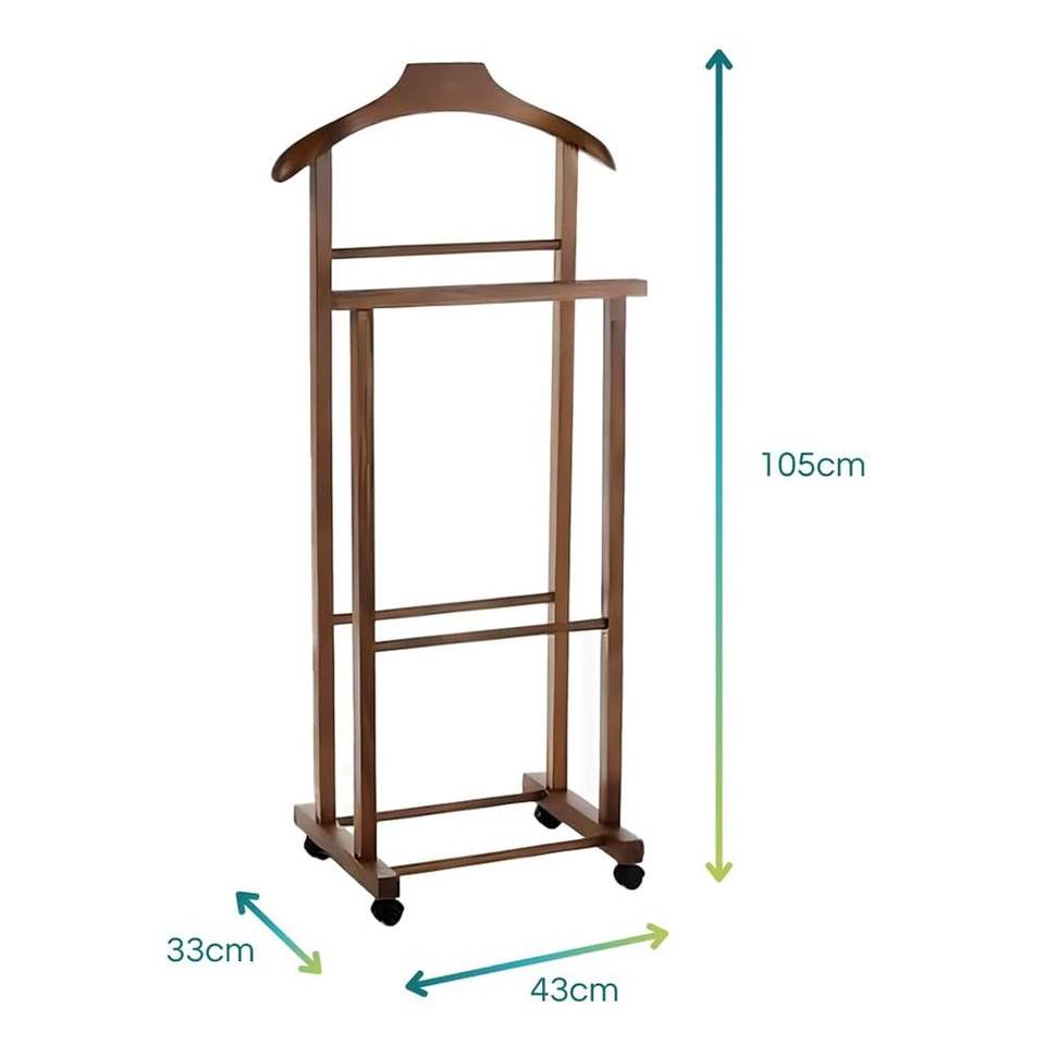 Walnut-Colored Beech Wood Valet Stand 43x33x105 cm Coat Stand for Organizing Jackets Trousers Shirts