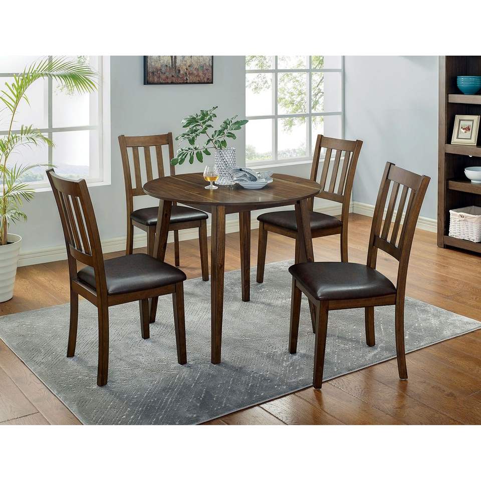 Set da Pranzo 5 Pezzi in Noce/Marrone Scuro, Stile Transizionale in Legno Massello, 4 Sedie Laterali e 1 Tavolo da Pranzo per Sala da Pranzo