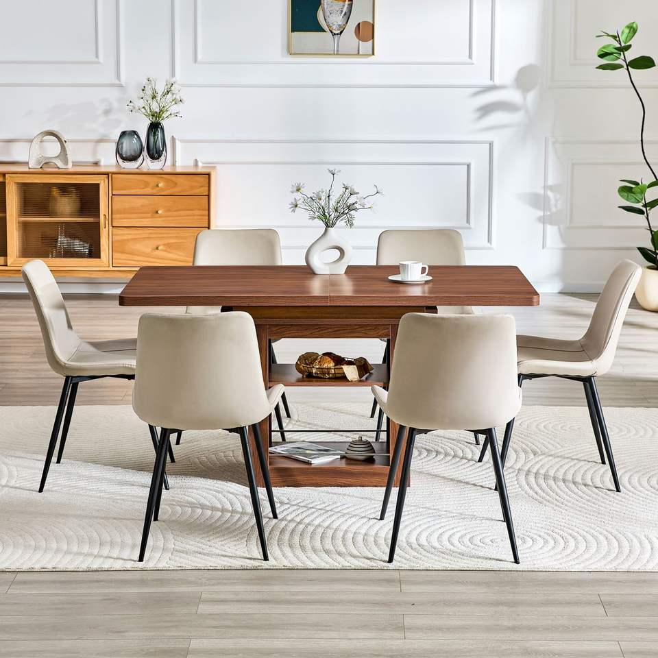 Set Tavolo da Pranzo Allungabile in MDF Noce 59-71 Pollici e 6 Sedie in PU Artificiale Grigio Caldo