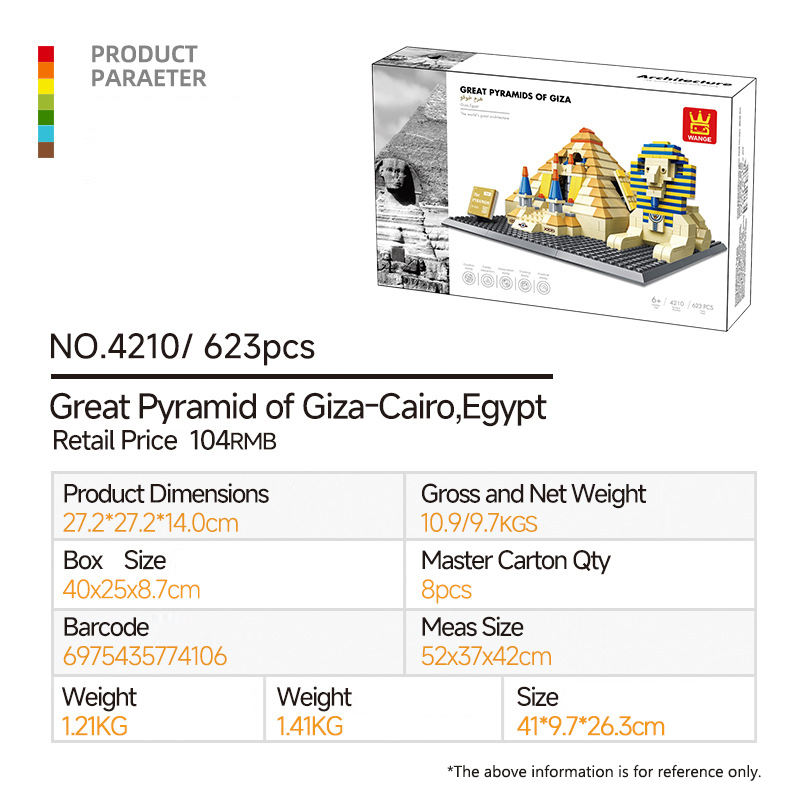 Wange Plastic ABS Building Blocks Famous Landmark Model Egypt Cairo Giza Pyramid Small Particles DIY Toy