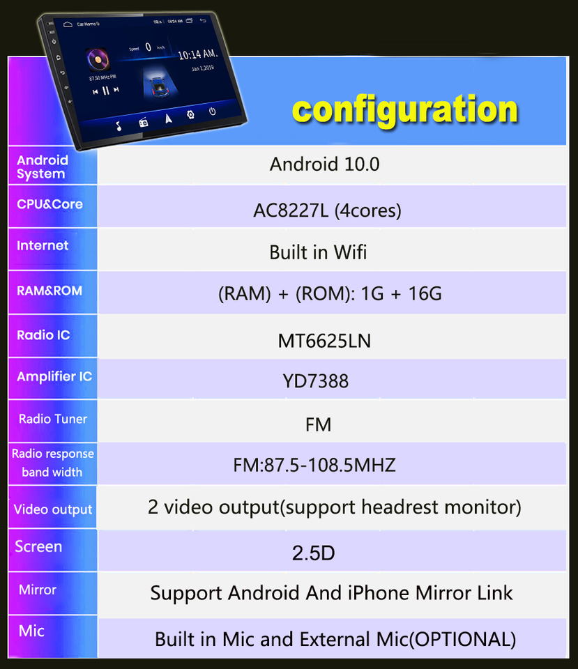 Dimensioni dello schermo:8 pollici