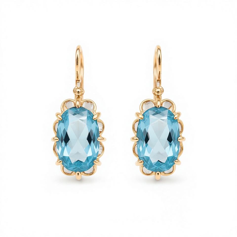 Orecchini pendenti Ward Sky Blue e oro bianco con incastonatura a castone, gioielli da donna per tutti i giorni E4625