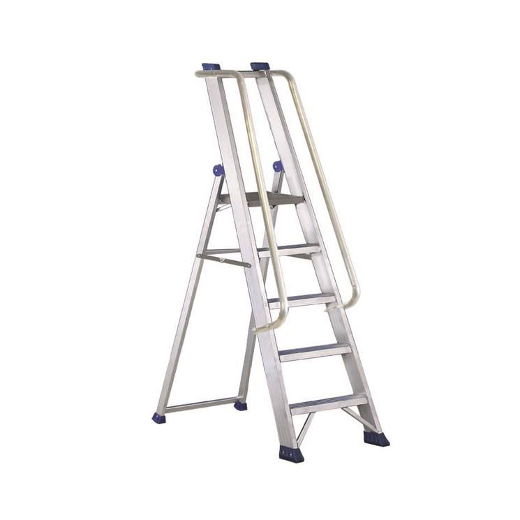 Scala da magazzino a forbice con piattaforma, corrimano e vassoio portautensili AL