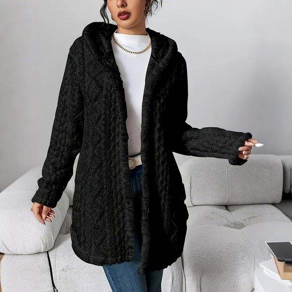 Cardigan con cappuccio in pile da donna caldo, traspirante e facile da curare - Manica lunga