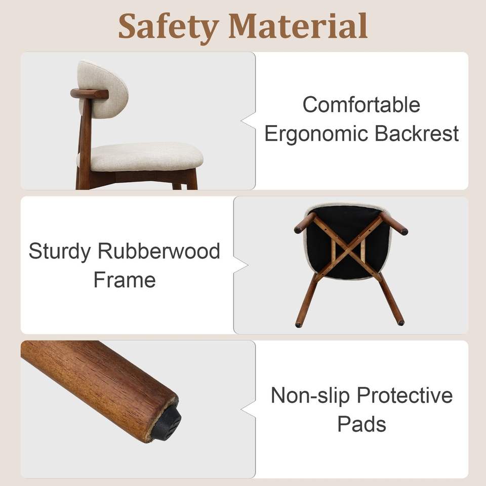 Set di 4 Sedie da Pranzo Imbottite in Flanella Grigio Caldo con Gambe in Legno Massello di Noce, Senza Braccioli, per Cucina, Ristorante, Soggiorno