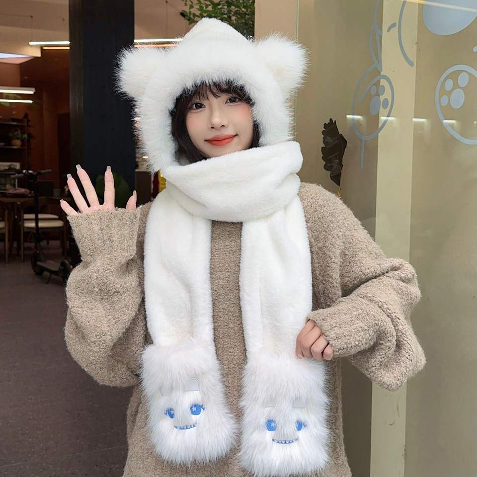 Warm Winter Hat with Fleece and Thickened, Cute Little Monster Women's Winter Hat Three-piece Set, Versatile Women's Hat